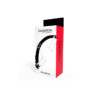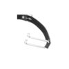 Correas en cuero negro y enganches de metal con terminaciones redondeadas para proporcionar un confort que no interfiera en la diversión.