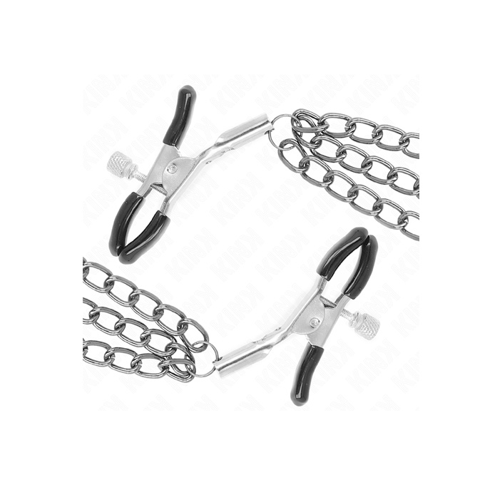 Pinzas para los pezones con cadena metálica triple en color gris antracita.