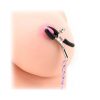 Pinzas para los pezones con cadena metálica. Las pinzas están recubiertas de suave silicona negra y disponen de un sistema de seguridad para controlar en todo momento el nivel de presión sobre el pezón. Atrévete con este complemento especial y deja a tu pareja con la boca abierta. Recomendado para amantes aventureros.