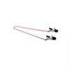 Pinzas para los pezones con cadena metálica. Las pinzas están recubiertas de suave silicona negra y disponen de un sistema de seguridad para controlar en todo momento el nivel de presión sobre el pezón. Atrévete con este complemento especial y deja a tu pareja con la boca abierta. Recomendado para amantes aventureros.