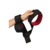 Se ajustan con velcro. Muy resistentes y difíciles de desatar para el/la sumiso/a. La altura de las muñecas es regulable gracias a la tira de la espalda.