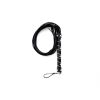 Llamativo látigo en color negro con acabado de brillantes en el mango y rematado con tachuelas en forma de pincho.