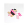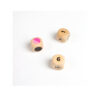 Las piezas van numeradas del 1 al 12 en cuatro colores: madera, rosa, fucsia y negro.