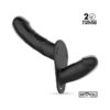 Arnés doble en color negro que puede utilizarse con tiras o sin ellas. Realizado en silicona médica 100% totalmente hipoalergénica.