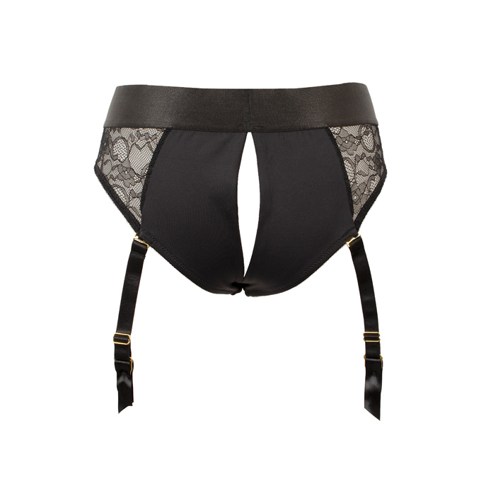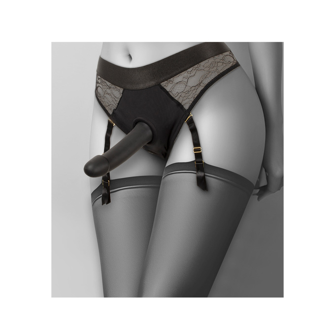 Arnés especial tipo braguita que incluye unos fabulosos ligueros desmontables. Podrás utilizar el arnés con tus medias favoritas, añadiendo un toque sofisticado y muy seductor.