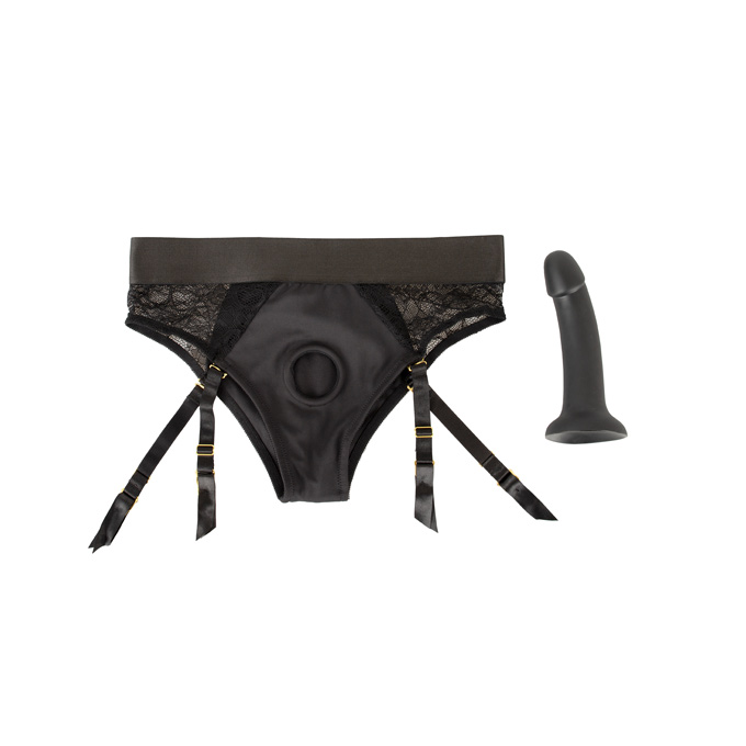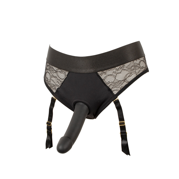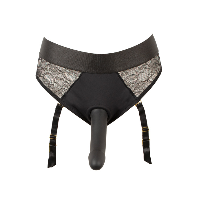 Disfruta al máximo de la elegancia y el placer en tus relaciones con esta braguita con dildo incluído de gran calidad.