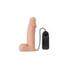 El vibrador tiene aspecto realista, es flexible y puede regularse su intensidad mediante su mando con cable que se sujeta cómodamente en el propio arnés.