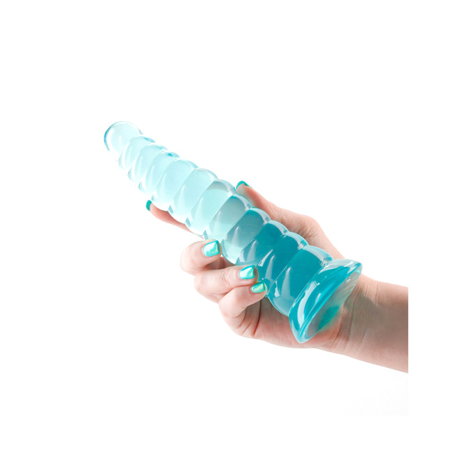 Dildo transparente con un acabado texturado y forma progresiva. Flexible y visualmente muy estimulante. Original y diferente.