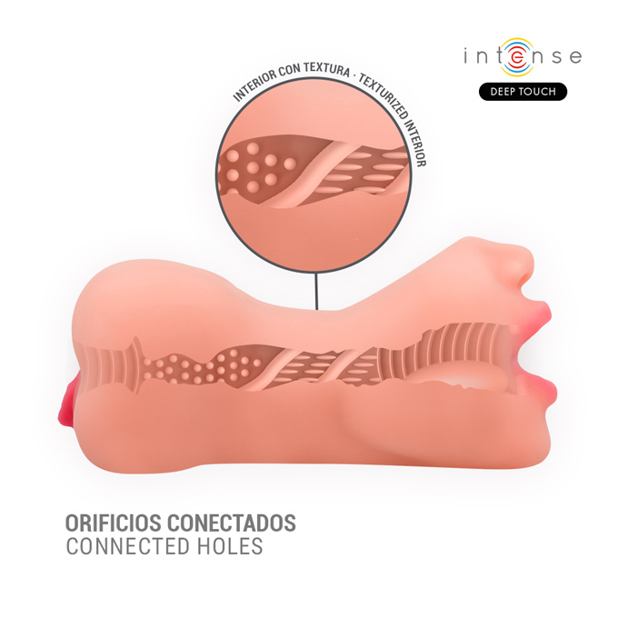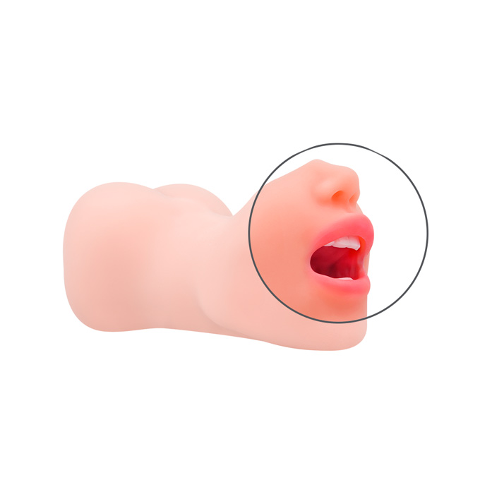 Este masturbador realista cuenta con dos orificios conectados: una boca detallada con dientes duros realistas y una vagina de textura suave recreadas con un nivel de detalle impresionante. La sensación de penetración es natural, gracias a su material flexible y de tacto realista, que se adapta perfectamente al cuerpo para un placer auténtico y envolvente. El interior texturizado está diseñado para estimular cada movimiento, con una combinación de estrías, nódulos y canales estrechos que generan una fricción deliciosa. Además, su diseño permite compartir el juguete con tu pareja, incorporándolo en juegos en pareja para una experiencia aún más excitante y creativa. Incluye también orificio anal con textura.