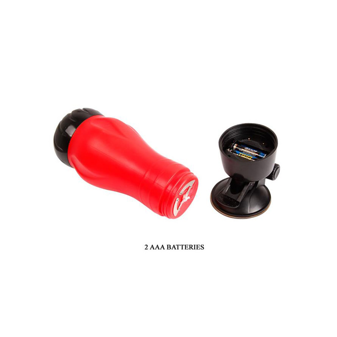 Masturbador vibrador con forma de vagina. Incluye un potentemotor que estimula toda la longitud del pene.