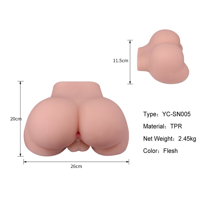 Masturbador en material realista que se asemeja a la piel. Blandito y acolchado, con forma de glúteos masculinos. Incluye orificio anal y testículos.