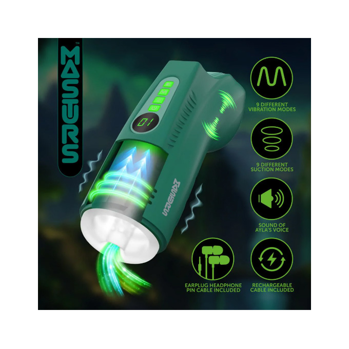 Entra en el mundo del placer con la guerrera del bosque Ayla. Tu compañera sensual procedente del corazón de un bosque salvaje y encantado. Este masturbador multifunción es más que un juguete; es la puerta a una experiencia única como ninguna otra. Incluye succión, vibración y sonido mediante auriculares. Ayla reaccionará a tus movimientos, guiándote con susurros y gemidos. Síguela a lo largo de árboles y cascadas, aunque la magia real comenzará cuando escanees su código QR.