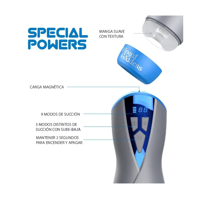 Eloa la diosa alada te espera para excitar tus sentidos. Este masturbador cuenta con funciones de succión y vibración que junto con el contenido incluído de placer de fantasía en Realidad Aumentada, te garantizan horas y horas de placer. Entrégate al placer divino con la Diosa Alada Eloa, un ángel de una sensualidad impresionante proveniente de un reino celestial donde el deseo no conoce límites. Este masturbador multifunción te transportará a las nubes con sus funciones de succión y vibración.