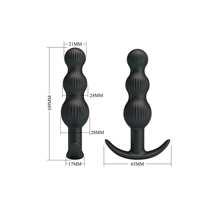 Vibrador anal unisex con forma ondulada progresiva ideal para experimentar los placeres anales de forma segura. Motor vibrador recargable, con tope especial de seguridad para evitar que el juguete se escape durante el uso.