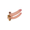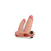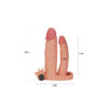 Además esta funda incluye un pene extra más fino y flexible para realizar a la vez penetración anal y un vibrador clitoriano con 10 velocidades que puede usarse por separado.