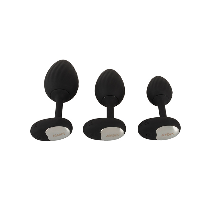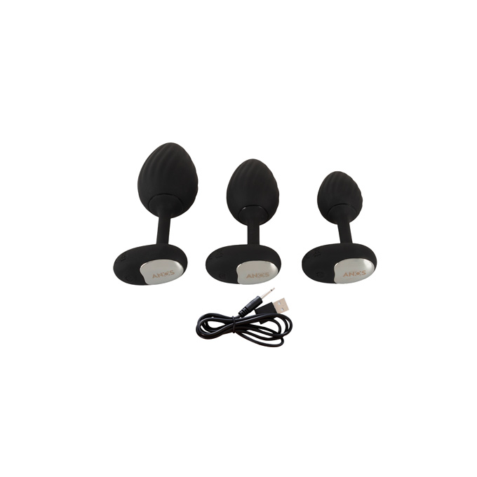 - Juego de 3 plugs anales vibradores de diferente tamaño.