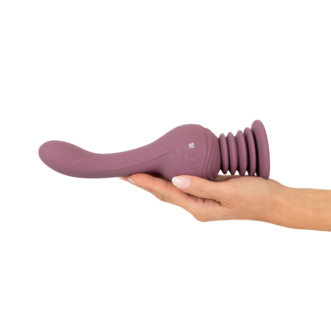 El innovador sistema de movimiento telescópico Ultra Thrusting Jet te ofrece tres modos distintos de movimiento sube-baja. Estos poderosos movimientos simulan una penetración de alta intensidad, con gran energía. Gracias a su forma de muelle en la base, el juguete rebota multiplicando su movimiento para hacerte enloquecer.