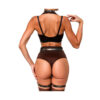 Conjunto de 1 pieza completo que incluye un arnés que se abrocha en el cuello, cintura y en ambas piernas a modo de ligueros.