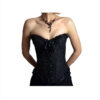 Corset con diseño de brocado negro ideal para usarlo como accesorio de lencería o como prenda de vestir.