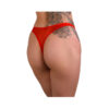 Tanga de encaje rojo abierto en la entrepierna y con bordados en color blanco plata.