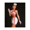 Completo disfraz de enfermera con tiras elásticas en la cintura.