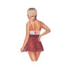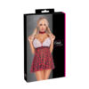 - Disfraz tipo vestido con tejido semi transparente, busto de encaje blanco y tirantes ajustables.