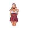 - Disfraz tipo vestido con tejido semi transparente, busto de encaje blanco y tirantes ajustables.