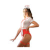 - Body rojo y blanco de enfermera con ligueros elásticos y ligas de una pieza.
