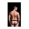 Suspensorio en color negro fabricado en microfibra, elástico y cómodo. Detalle de abertura en la zona delantera.
