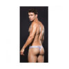 Tanga de microfibra elástico y cómodo en color blanco con transparencias en forma de líneas.