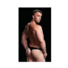 Tanga de poliéster elástico y muy cómodo en color negro con efecto mojado o cuero.