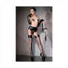Fabuloso pack de complementos ideales para combinar juntos o por separado con otras prendas. La prenda principal es un liguero con efecto mojado que imita al cuero, que dará un efecto más atrevido a tu lencería.Productos presentado en caja. Incluye:
