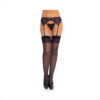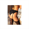 Liguero elástico en color negro decorado con pedrería. Forma clásica de liguero con pinzas en la parte delantera y trasera.