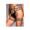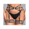 Liguero elástico en color negro decorado con pedrería. Compuesto por varias tiras que realzan la figura. No se necesitan medias.