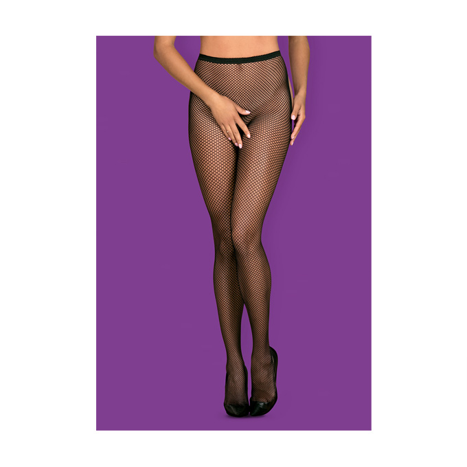 Panty completo de rejilla con abertura en gluteos y pierna con trenzado tipo rejilla grande. Sin abertura en la entrepierna.