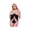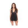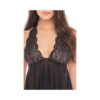 Picardías con escote de encaje color negro. Se sujeta en el cuello. Vuelo con transparencias.