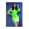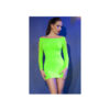 Deslumbra con este mini vestido en vibrante color verde neón, diseñado para realzar tu figura y abrazar de forma perfecta cada una de tus curvas. Con sensuales aberturas en las mangas y la espalda, este modelo combina estilo atrevido y sensualidad. Su diseño elástico asegura un ajuste cómodo y favorecedor. Ideal para una noche de fiesta o una ocasión especial donde quieras robar miradas.