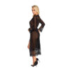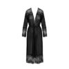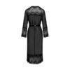 Llena tu vida de sensualidad con esta magnífica bata de tejido semi transparente en color negro. Incluye detalle de encaje en el vuelo y las mangas.
