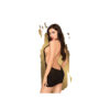 Mini vestido con cuello escotado vuelto profundo y espalda descubierta, tanga incluido.