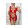 Vestido muy elástico y ajustable tipo media en color rojo. Decorado con pedrería por todo el vestido.