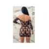 Vestido muy elástico y ajustable tipo media en color negro. Decorado con pedrería por todo el vestido.