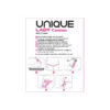 Condón femenino, lubricado, con burbuja de aire como mecanismo de retención interna y delicados sujetadores de encaje que simulan ligas.